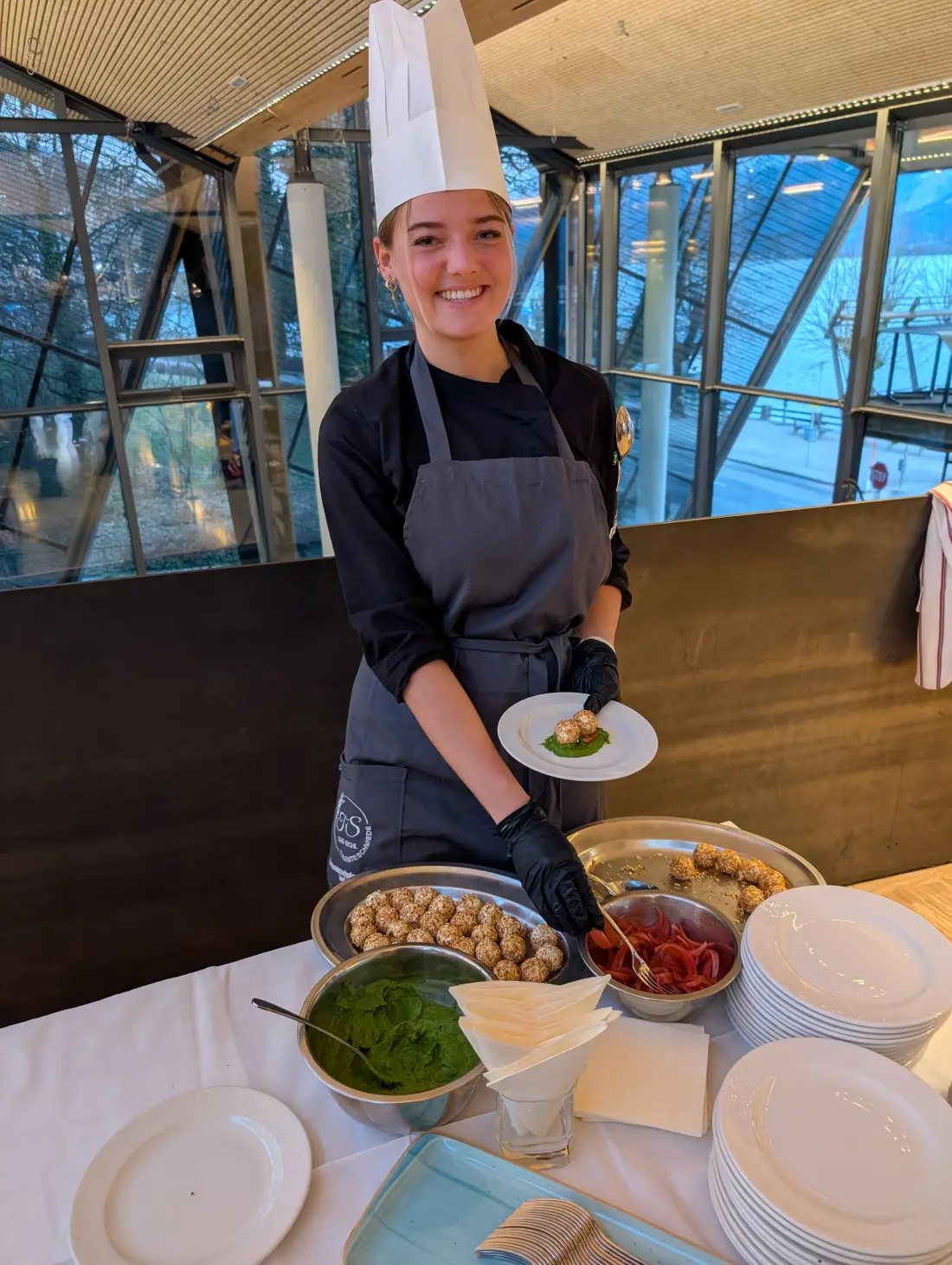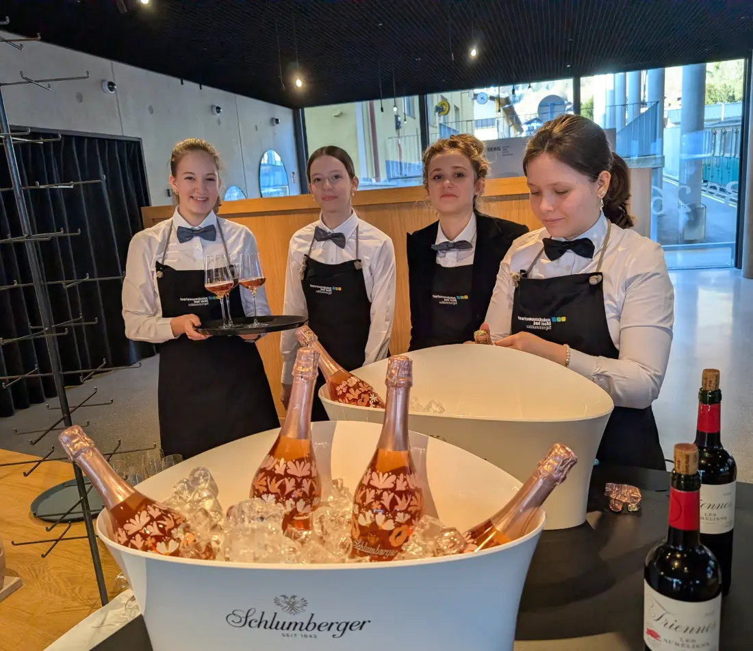 Der Höhepunkt des Abends war das Live-Kochen der „Talenteschmiede“, einer Gruppe besonders engagierter SchülerInnen, die im Zusatzprogramm der Bad Ischler Tourismusschulen eine intensive Ausbildung absolvieren. Sie investieren abends zusätzliche Unterrichtsstunden neben ihrem regulären Unterricht. „Alle sind mit Begeisterung dabei,“ betonte Direktor Mag. Wolfgang Falkensteiner, der auch Fachvorstand Günter Gaderbauer sowie die PraxislehrerInnen Marlies Nahmer, Lorenz Pesendorfer, Reinhold Etmayer und Uwe Muhr mit goßer Wertschätzung erwähnte: „Die Talenteschmiede zeigt, was entsteht, wenn Motivation, Leidenschaft und Talent zusammentreffen. Unsere Schülerinnen und Schüler lernen nicht nur von ihren LehrerInnen, sondern auch von- und miteinander – das ist Teamwork auf höchstem Niveau,“ so Falkensteiner stolz.