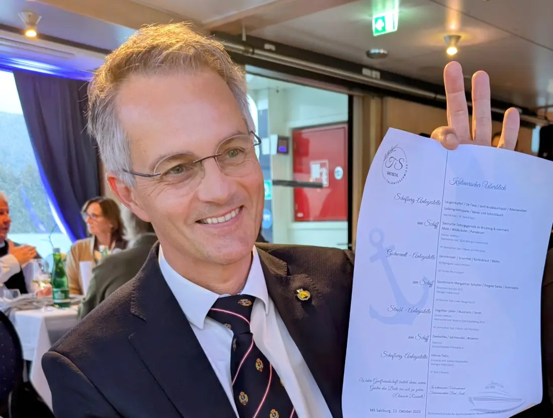 „Wahre Gastfreundschaft besteht darin, seinen Gästen das Beste von sich zu geben." Dieses Eleanor Roosevelt zugeschriebene Zitat stand auf der Einladung der Talenteschmiede der Tourismusschulen Bad Ischl, die unter dem Motto „Leinen los für neue Perspektiven“ am 23. Oktober 2025 gemeinsam mit der Wolfgangsee Schifffahrt zu einem ganz besonderen Erlebnis lud. Neben der großen Veranstaltung „Salz in der Suppe“ in der Tourismusschule selbst war es laut Fachvorstand Günter Gaderbauer bereits die dritte außer Haus stattfindende Veranstaltung der Talenteschmiede.