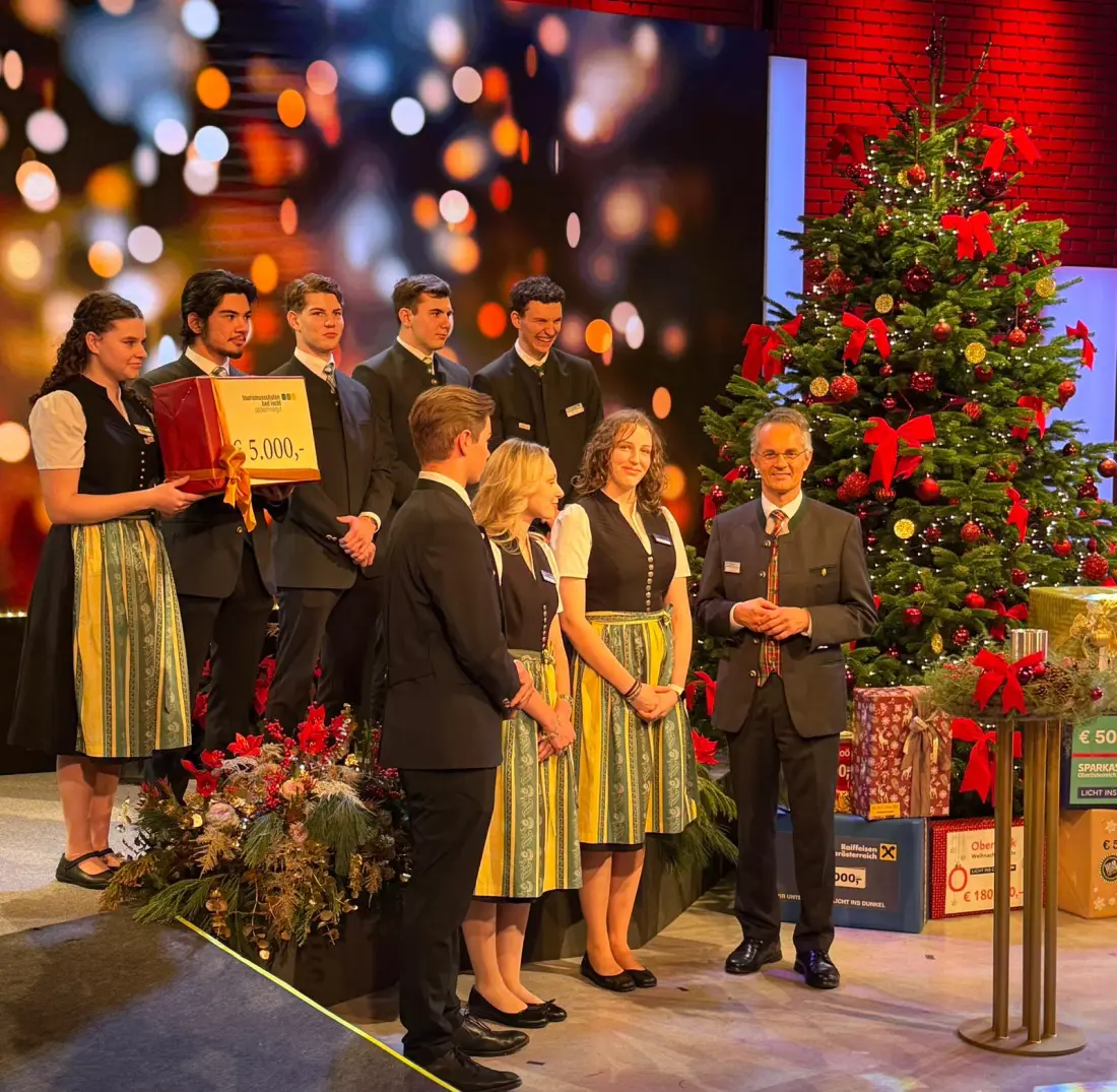 Am Nachmittag des 24. Dezembers war es soweit: Schülerinnen und Schüler der dritten Jahrgänge durften vor die ORF-Kamera treten und eine Spende von 5.000 Euro überreichen.