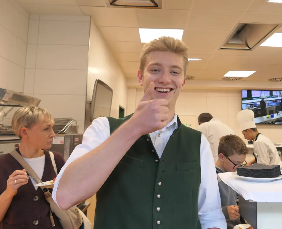 „Ist das toll, wie breit euer Bildungsangebot ist und man lernt nicht nur Kochen und Servieren“, war ein Ausspruch, den man immer wieder hörte. Beim Rundgang durch das Schulgebäude waren vor allem die Vertiefungen, der Sportunterricht und die Ausbildung in den Sprachen interessant; in den Service- und Küchenräumen konnte man Einblick in die praktischen Fächer sowie in die „Talenteschmiede“ gewinnen.